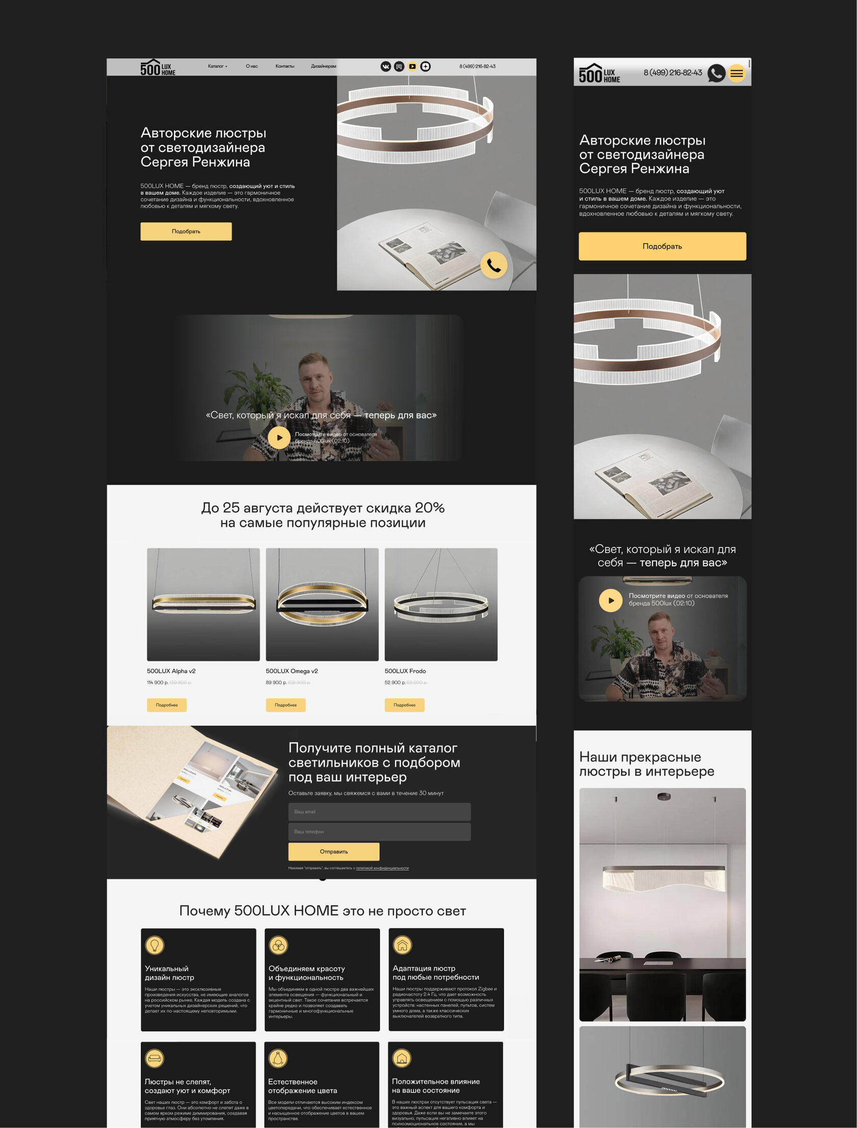 Моя задача заключалась в том, чтобы создать сайт, который:- ощущается как бутик в мире освещения;